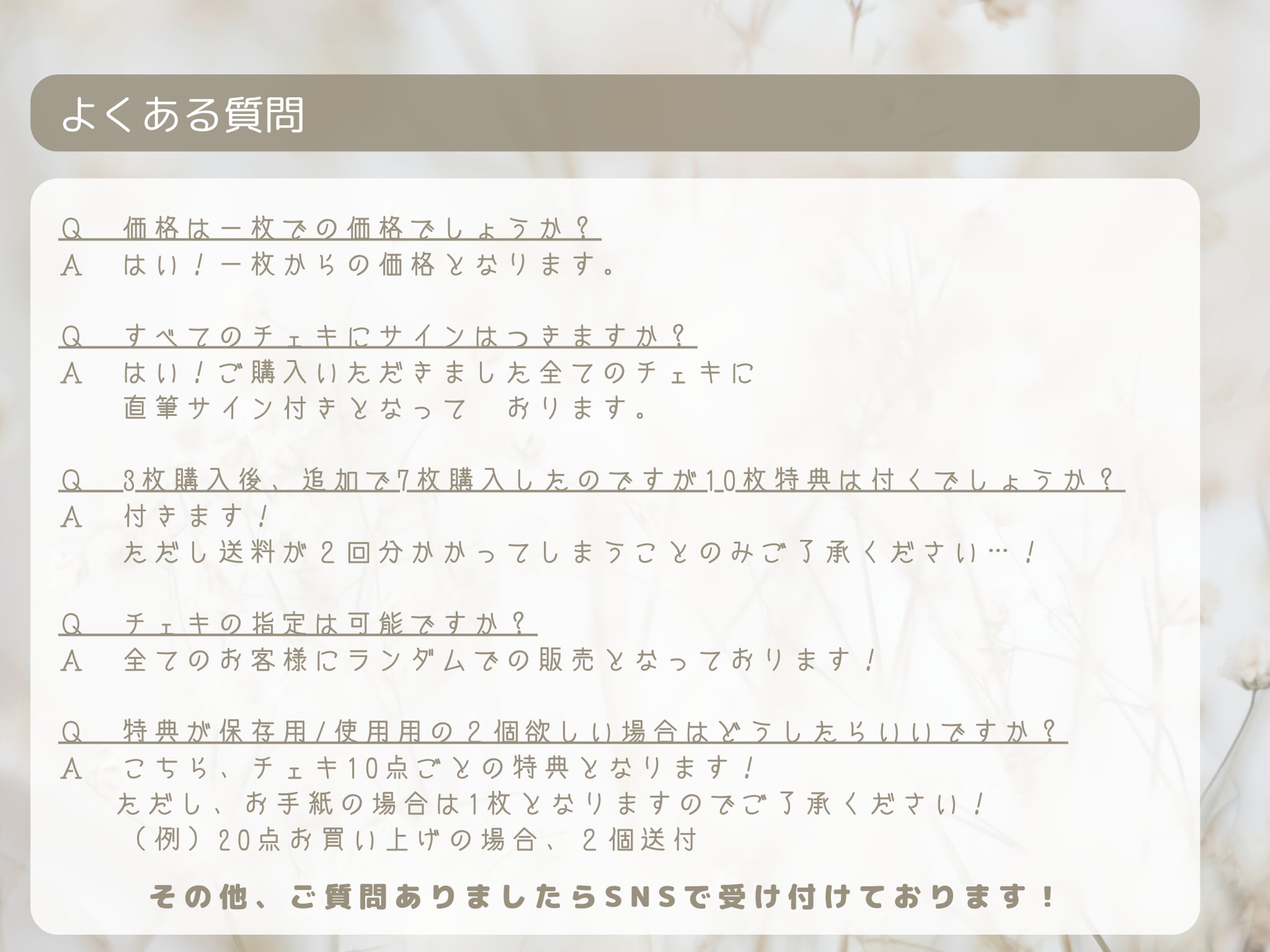Q すべてのチェキにサインはつきますか?